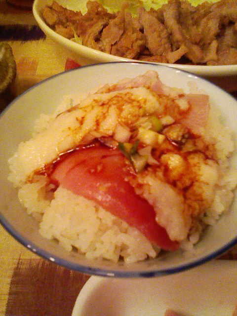 山かけ、豚焼き肉@夕食