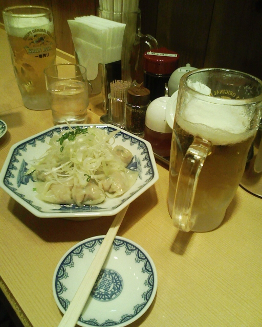 ”ラーメン屋のカウンターでビールと餃子でラーメンを食べる”というこあらの野望はついに達成された・・・。