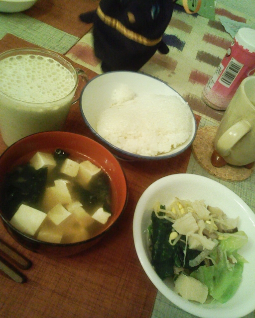 朝ごはんの煮物と冷や汁、味噌汁つき。